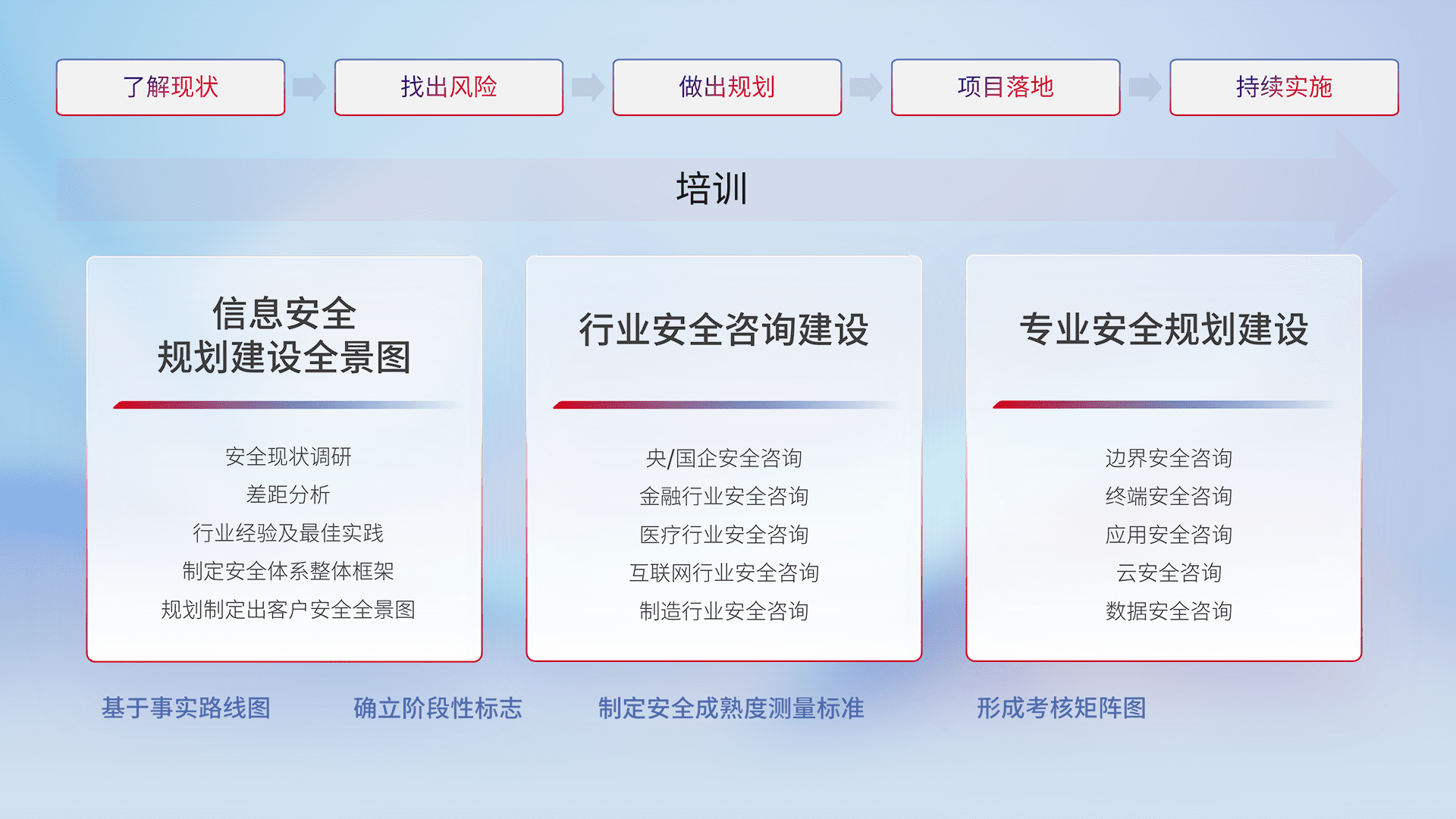 梳理客户信息安全现状调研、、、差距分析结果,,,结合行业先进经验及最佳实践,,,制订客户的信息安全管控体系总结架构,,最终形成一个完整的客户信息安全规划与建设的全景图。。