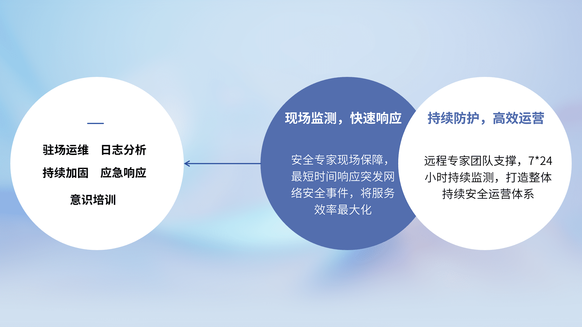 针对客户行业特性,,,提供专属的一站式安全管理服务,,帮助客户全面感知网络空间威胁,,,通过安全专家的线上、、、、线下防护支持,,,实现风险闭环,,,将安全保障常态化,,,为客户打造常态化安全运维运营服务。。。